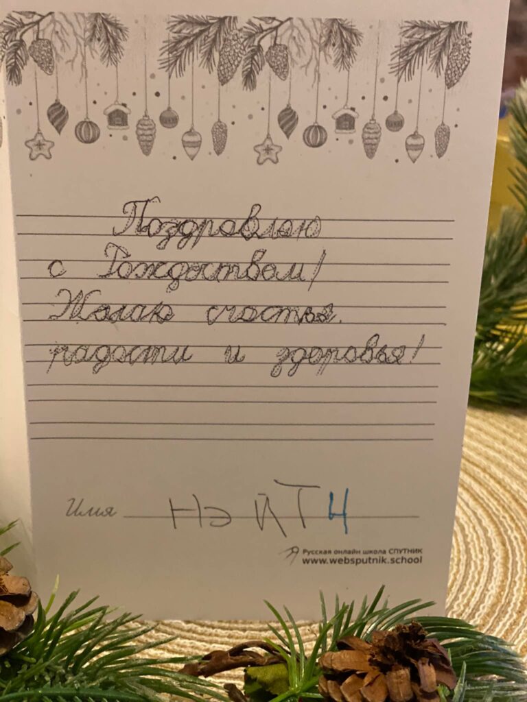 Делаем рождественские и новогодние открытки и подписываем их на русском языке.